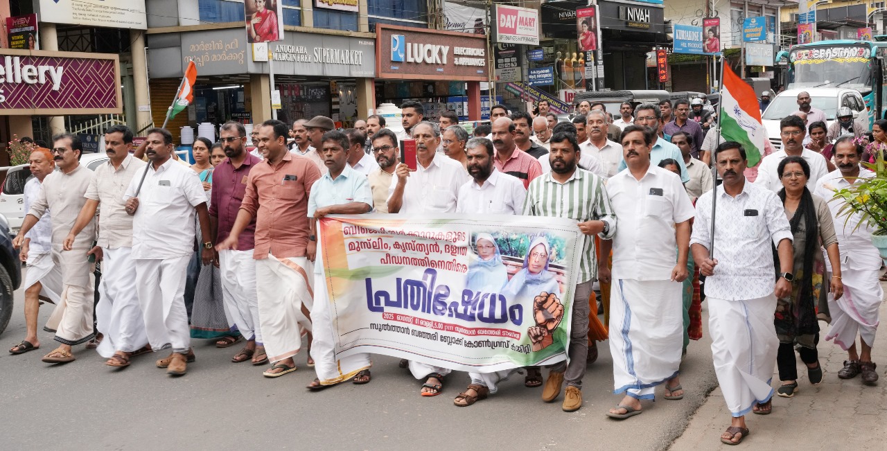 സുല്ത്താന്ബത്തേരി: നിരപരാധികളായ രണ്ട് കന്യാസ്ത്രീകളെ ജയിലടച്ച സംഭവത്തില് എട്ട് ദിവസമായും ജാമ്യം ലഭിക്കാനുള്ള അവസരം നിഷേധിക്കുന്ന ഛത്തിസ്ഗഡ് സര്ക്കാരിന്റെ നിലപാടില് പ്രതിഷേധിച്ചുകൊണ്ട് സുല്ത്താന്ബത്തേരി ബ്ലോക്ക് കോണ്ഗ്രസ് കമ്മിറ്റി ഭരണഘടന ഉയര്ത്തിപിടിച്ചുകൊണ്ട് പ്രതിഷേധ പ്രകടനവും, പൊതുയോഗവും നടത്തി. ഡി സി സി പ്രസിഡന്റ് എന് ഡി അപ്പച്ചന് ഉദ്ഘാടനം ചെയ്തു. രാജ്യത്തിന്റെ മതേതരത്വവും ജനാധിപത്യവും തകര്ക്കുന്ന നടപടികളാണ് നടക്കുന്നതെന്ന് അദ്ദേഹം പറഞ്ഞു. പൗരന്മാരുടെ മൗലികാവകാശങ്ങള്ക്ക് നേരെയുണ്ടായ കടന്നുകയറ്റമാണ് ഛത്തിസ്ഗഡില് കണ്ടത്. ഇതിന് പിന്നില് വര്ഗീയ ഫാസിസ്റ്റ് ശക്തികളുടെ ഗൂഡാലോചനയുണ്ട്. മനുഷ്യകടത്ത് കുറ്റം ചുമത്തിയതും, കേസ് എന് ഐ എക്ക് കൈമാറിയതും ഇതിന്റെ ഭാഗമാണ്. ഏറ്റവുമൊടുവില് കോടതിയില് ജാമ്യം നല്കുന്നതിനെ പ്രോസിക്യൂഷന് എതിര്ത്തതിലൂടെ കേന്ദ്ര ആഭ്യന്തരമന്ത്രി അമിതാഷായുടേത് പാഴ്വാക്കായിരുന്നുവെന്ന് വ്യക്തമായിരിക്കുകയാണ്. സംസ്ഥാന ബി ജെ പി പ്രസിഡന്റ് ജാമ്യത്തെ ഛത്തിസ്ഗഡ് സര്ക്കാര് എതിര്ക്കില്ലെന്നാണ് പറഞ്ഞത്. എന്നാല് നേര്വിപരീതമായാണ് കോടതിയില് നടന്നത്. രാജ്യത്തിന്റെ മതേതരത്വത്തിനേറ്റ മുറിവാണ് ഈ സംഭവമെന്നും, ഇത്തരം ഹീനമായ നടപടികള്ക്കെതിരെ അതിശക്തമായ സമരത്തിന് കോണ്ഗ്രസ് നേതൃത്വം നല്കുമെന്നും അദ്ദേഹം പറഞ്ഞു. ബ്ലോക്ക് പ്രസിഡന്റ് ഉമ്മര്കുണ്ടാട്ടില് അധ്യക്ഷനായിരുന്നു. ഡി പി രാജശേഖരന്, സംഷാദ് മരക്കാര്, നിസി അഹമ്മദ്, സക്കരിയ മണ്ണില്, ബെന്നി കൈനിക്കല്, സി എ ഗോപി, കുന്നത്ത് അഷ്റഫ്, എം കെ ഇന്ദ്രജിത്ത്, ലയണല് മാത്യു, ശാലിനി രാജേഷ്, വൈ രഞ്ജിത്ത്, അഷ്റ മാടക്കര, ബാബു പഴുപ്പത്തുര്, രാധാ രവീന്ദ്രന്, ഷിജു കൊഴുവണ, കെ.കെ ബാബു, യൂനുസ് അലി, മണി ചോയിമൂല, അസീസ് മാടല, ടി എല് സാബു പ്രസന്ന ശശി, കൃഷ്ണ, ബിന്ദു സുധീര് ബാബു, പുഷ്പ തുടങ്ങിയവര് സംസാരിച്ചു.