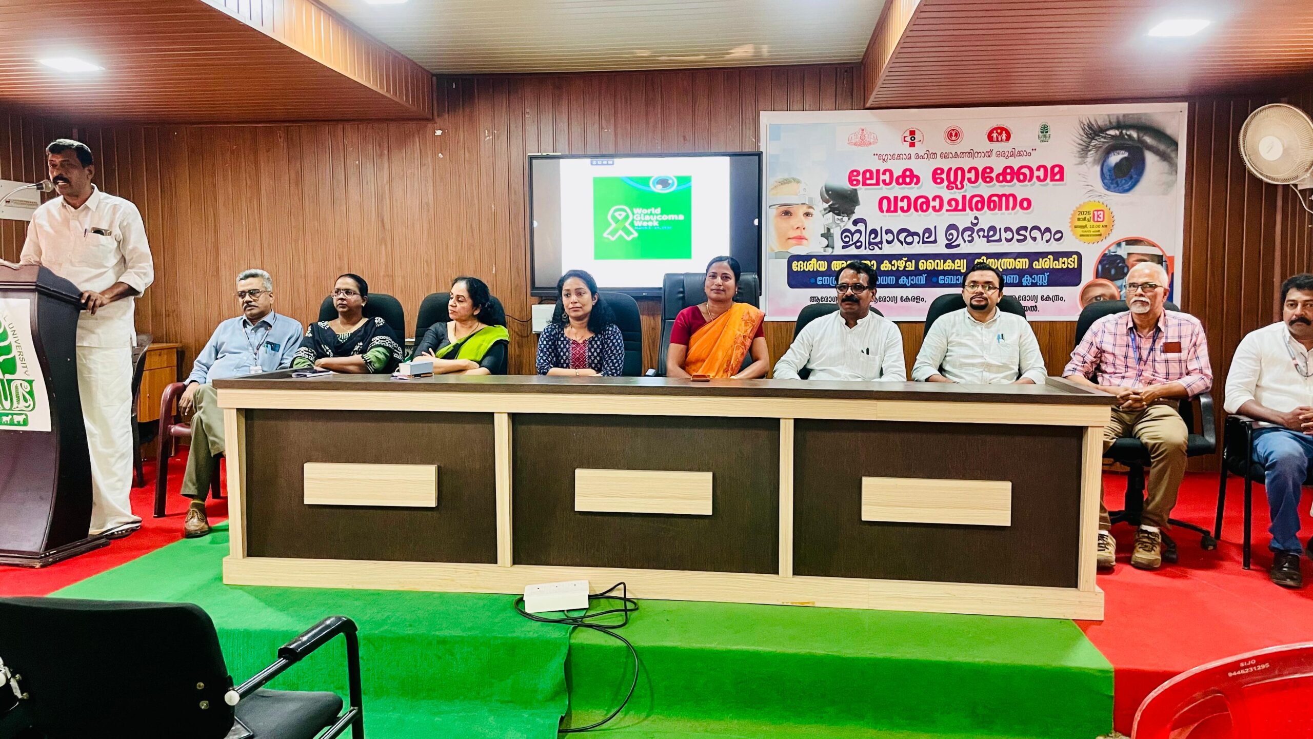 ഗ്ലോക്കോമ മുക്ത ലോകത്തിനായി ഒരുമിക്കാം എന്ന സന്ദേശവുമായി ആരോഗ്യ വകുപ്പിന്റെയും ദേശീയ ആരോഗ്യ ദൗത്യത്തിന്റെയും ആഭിമുഖ്യത്തില് ലോക ഗ്ലോക്കോമ വാരാചരണം സംഘിപ്പിക്കുന്നു. വാരാചരണത്തിന്റെ ജില്ലാതല ഉദ്ഘാടനവും നേത്രപരിശോധന ക്യാമ്പും അമ്പലവയല് റീജ്യണല് അഗ്രികള്ച്ചര് റിസര്ച്ച് സ്റ്റേഷനില് അമ്പലവയല് ഗ്രാമപഞ്ചായത്ത് പ്രസിഡന്റ് എന്.സി കൃഷ്ണ കുമാര് ഉദ്ഘാടനം ചെയ്തു. കണ്ണുകളിലെ നാഡികളെ ബാധിക്കുകയും അറിയാതെ അന്ധതയിലേക്ക് നയിക്കുകയും ചെയ്യുന്ന ഗ്ലോക്കോമ രോഗത്തിനെതിരെ മുന്കരുതലെടുക്കാന് പൊതുജനങ്ങളെ പ്രാപ്തരാക്കുകയാണ് ലക്ഷ്യം.